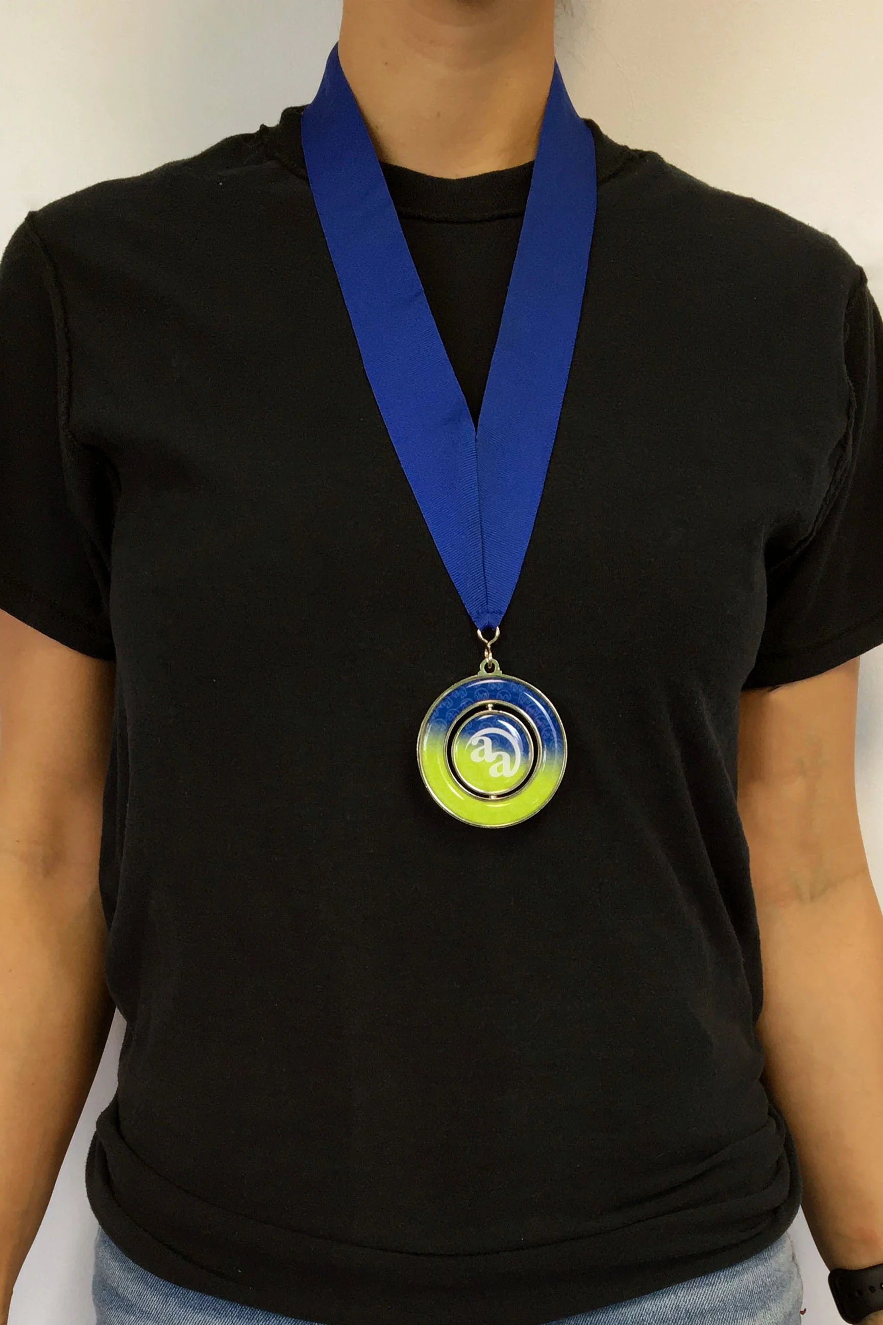 Available in bright gold or bright silver this 2.5" Spinner Medal includes a fun spin on traditional medals with an insert that rotates.